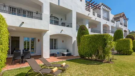 Escape the hustle and bustle and unwind in this elegant ground-floor apartment, nestled in the charming Los Eucaliptos urbanisation in the heart of green and tranquil Benahavís – one of the Costa del Sol’s most sought-after locations.